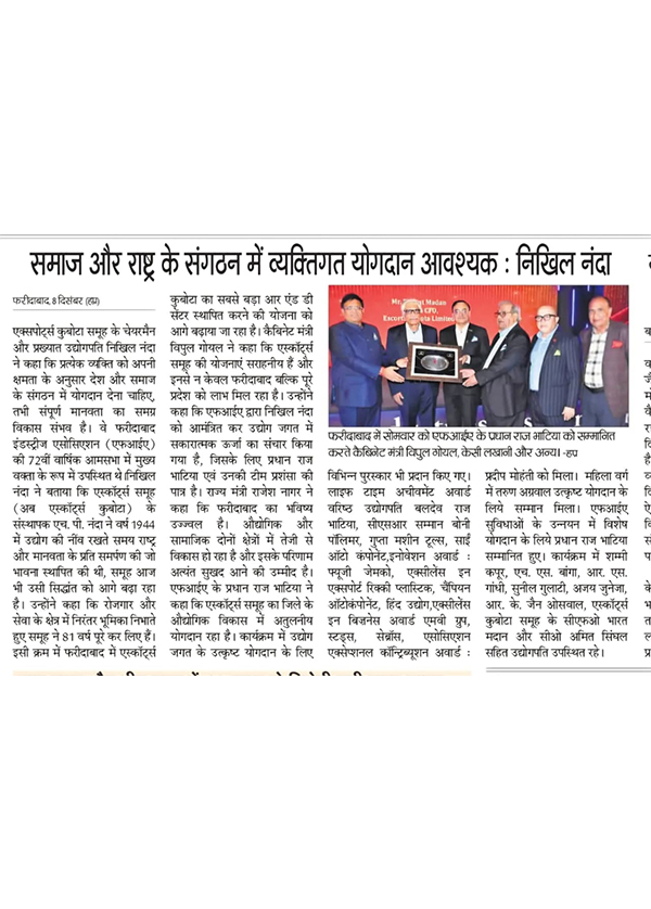 Faridabad Industries Association was established in 1952 by a group of enterprising industrialists. This Association has emerged as a front runner for the entrepreneurs of the Faridabad Complex. The Association plays a very constructive role by creating a bridge between the industry and the Government.